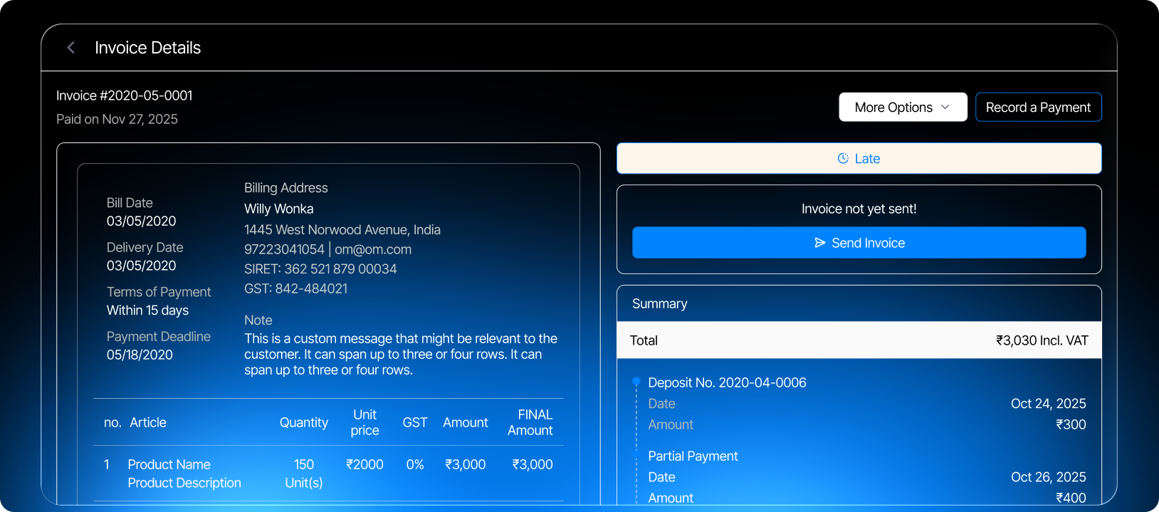 Manage multiple invoices smoothly with a unified dashboard that centralizes billing tasks. Easily track payment status and streamline your workflow without switching tools.